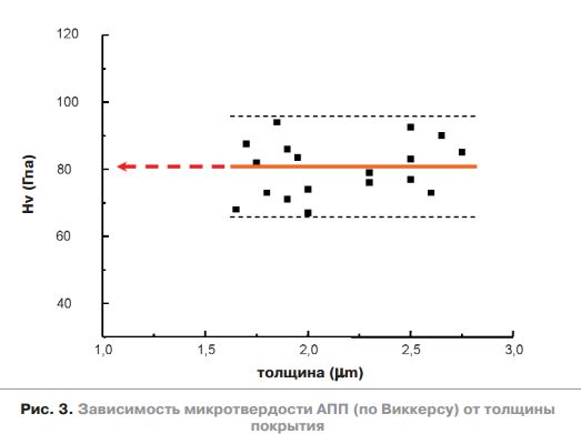 Сравнение физикомеханических свойств алмазоподобных покры тий, полученных с помощью техно логии импульсного вакуумнодуго вого разряда PVD (нашей компани ей), и методом CVD (химическое осаждение из пара углеводородов), представлено в таблице. Процесс напыления подобных покрытий по своей сути относится к области нанотехнологий, по скольку толщина покрытий варьи рует от ангстрем и нанометров до нескольких микрон. Разработан ное нами многослойное покрытие сложного состава (от смеси углеро да с металлами до чистого углеро да) с толщинами отдельного слоя в несколько нанометров, имеет об щую толщину 1,01,5 микрометра. Оно оказалось в состоянии выдер живать в процессе эксплуатации колоссальные механические на грузки. Именно это (многослой ность покрытия) позволило нам ре шить самую сложную проблему, ха рактерную для алмазоподобных покрытий, проблему хорошей ад гезии высокопрочного покрытия к большинству поверхностей, в том числе к высоколегированным ме таллическим сплавам, характер ным для инструментальных марок сталей. Так, алмазоподобное по крытие, нанесенное на металлооб рабатывающий инструмент, спо собно увеличивать срок его служ бы в несколько раз от 2 до 20 в зависимости от типа обрабатывае мого материала. Причем нужная величина микротвердости, близ кая к твердости алмаза, достигает ся при толщинах от 1,0 микрометра и более (рис. 3).